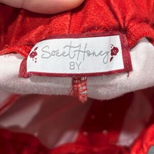SweetHoney pajamas, girls red joggers, holiday pajama pants, Christmas PJs, winter loungewear, Sweet Honey kids, red polka dot pants, girls sleepwear 8Y