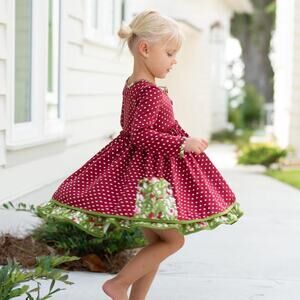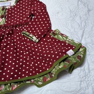 SweetHoney Christmas holiday mixed print dress. Long sleeve super twirly dress in red polka dot and green floral print and pocket details. Very good condition, minor wear. Size 12 months.