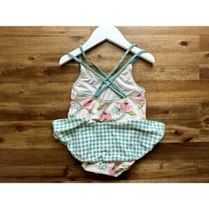 SweetHoney Morgan Skirted One Piece Swimsuit Creamy Floral Pink Green Gingham 5