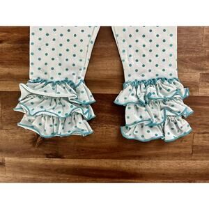 SweetHoney Nelly Leggings Aqua Light Blue Knit Ruffle Polka Dot Pants Cotton 18M