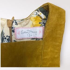 SweetHoney Yellow Corduroy Pinafore Dress, Floral Lined, has pockets Infants Size 12M