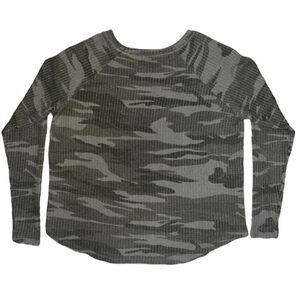 Sweet Romeo Cozy Thermal Pullover Top In Green Camo
