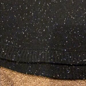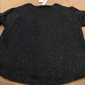 Sweet Romeo Black with White Crewneck Sweater. White is sporadic within the thread. Curved bottom. Made of polyester and acrylic. Size S. NWT.