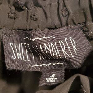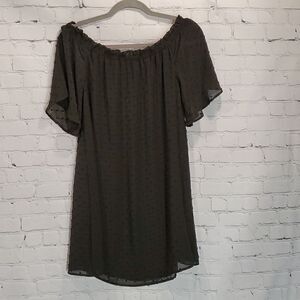 In excellent used condition black with embossed polka dots. Fully lined except for flutter sleeves. Neckline is elastic. Measures