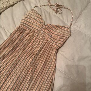 elegant cream/orange multi colored dress featuring a subtle striped pattern. Size small. Only worn twice
