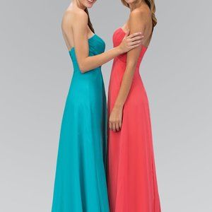 Long Formal Evening Dresses with sweetheart neckline, strapless dress, open back with zippered closure, a-line shape.
