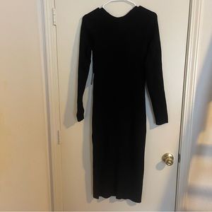 Sweetheart Neckline Ribbed Midi Sweater Dress