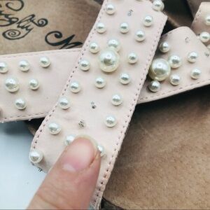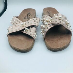 Naughty monkey women’s Sweetheart Sandal In great preowned condition two pearl on one shoe is missing shown in photo size 10