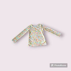 Sweet little #long-sleeve #floral #rashguard from #Sweethoney. Made with soft #swimwear material. I'm uncertain we've ever worn this. No flaws I could see. #tween