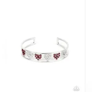 A white rhinestone encrusted silver heart adorns the center, creating a flirtatious centerpiece braclet.