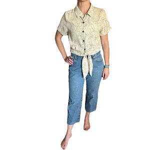Cream colored button up crop top. No flaws.