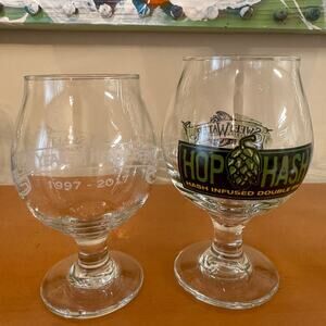 Sweetwater Brewing Vintage Wine Beer Glasses (2). 20 Years of Heady Beers, 1997-2017, Anchor Glass Containers (10 ounce), and Hop Hash Hash Infused Double IPA 12 ounces.