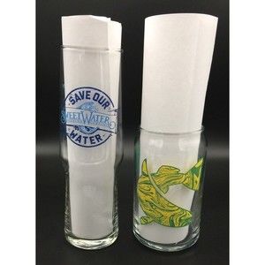 You are bidding on a lot of 2 glasses - a Waterkeeper Hefeweizen Ale glass from Sweetwater Brewing and a Twisted Fish Crystal Pilsner glass from Sweetwater Brewing. The Waterkeeper Hefeweizen Ale glass measures approximately 8.0" tall and approximately 2.25" across at its top. The Twisted Fish Crystal Pilsner glass measures approximately 5.25" tall and approximately 2.5" across at its top. The glasses are both in great shape with minimal wear - there are no chips, cracks, or other damages. May need minor touch-up cleaning. Nice overall.