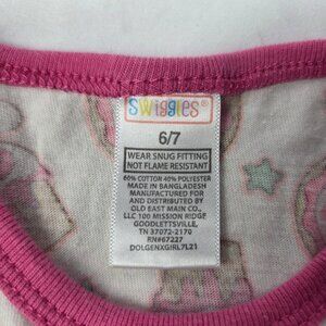 The Swegles 100% Cotton Size 6/7 Cotton Unicorn and Cupcakes Pajamas are a colorful and fun pajama set for girls. Made by Swegles, these pajamas feature a cute design with unicorns and cupcakes, perfect for any young girl. The size 6-7 ensures a comfortable fit, while the 100% cotton material makes them soft and breathable for a good night's sleep. Bright and playful, these pajamas are sure to be a hit with any little girl.