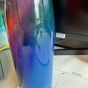 Stylish S'well bottle with a blue to pink gradient. Perfect for hydration on the go. Is in great used condition only signs of wear is a few little scuffs on bottom