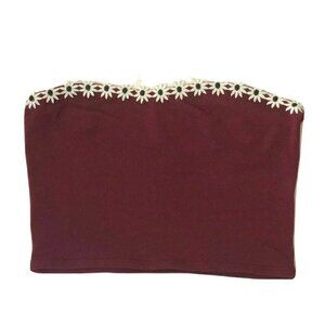 Swell Junior's Red Daisy Do Strapless Cropped Top Size M