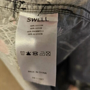 Swell Shirt M Slim Fit Black Floral Button Down Short Sleeve Tropical Coastal