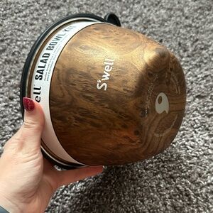 S'well Wooden Stainless Steel Salad Bowl with Black Lid (4 Piece Set)