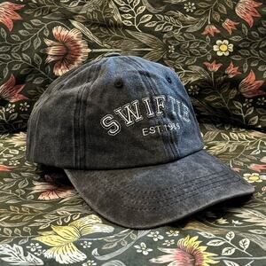 Dad hat style baseball cap with “Swiftie est. 1989” white embroidered graphic on the front.