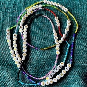 58” of Taylor Swift’s Eras or songs or quotes—select 10, on one long strand. It’s a great way to commemorate your Eras concert experience. And get one for your BFF—I discount for multiples.