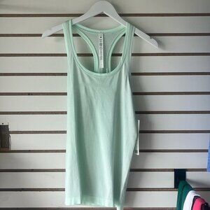 The Lululemon Swiftly Tech Racerback Tank 2.0 in Mint Green is a slim-fit women’s athletic tank with seamless construction for comfort, Silverescent technology to prevent odors, and mesh fabric for breathability. Elastane ensures stretch and shape retention.