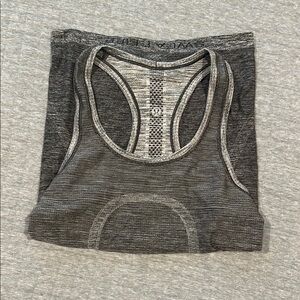 Stylish gray racerback tank top by Lululemon. Perfect for workouts or casual wear.
