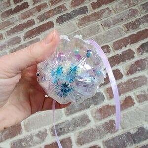 Ornament filled with hand made friendship bracelets.