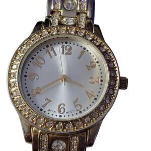 Swifty Style Women Japan Watch Bling Bling Gold Tone Crystal Link Bracelet Band