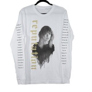 Swifty T.S. Reputation Stadium Tour T Shirt Unisex Size Medium White Long Sleeve