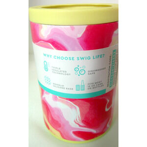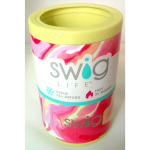 The Swig Life Pink Lemonade Can Cooler is a stylish and functional accessory for keeping your drinks cool. This can cooler, specifically designed for use with cans, features a vibrant pink color that adds a fun pop to your beverage. With the Swig Life brand known for quality and durability, this cooler is perfect for summer outings, picnics, or anytime you want to enjoy a refreshing drink on the go.