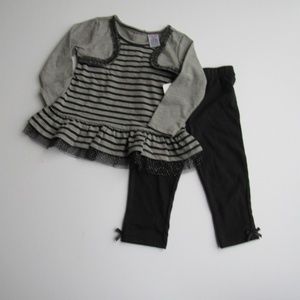 Two piece baby girls striped tunic style top and pants from Swiggles. Striped top with attached cardigan layered look.