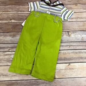 Swiggles Boys Outfit Size 6-9 Mo Monkey 3 Piece Set Bib Green Blue Brown NEW
