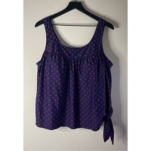 Tankini top from Swim 365. Navy with red polka dots. Side tie. Lightly padded shelf bra. Size 22W. Gently preowned condition with no tears or stains.
