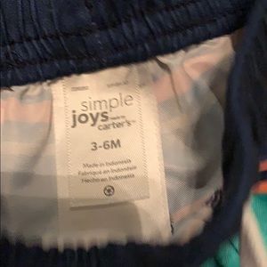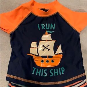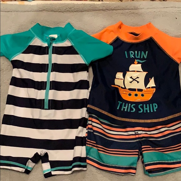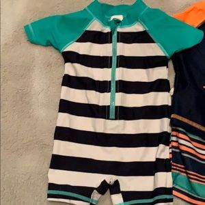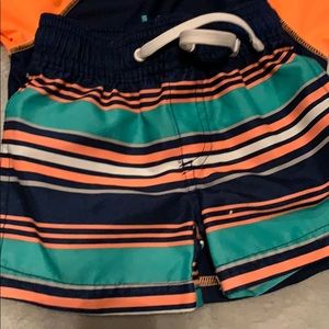 Swim shorts and matching swim trunks. One swim body suit. Used one time. Like new