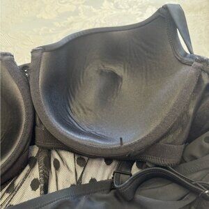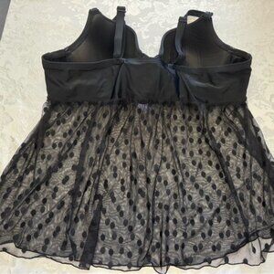 Swim By Cacique Balconette 40C Black Tankini Swimsuit Top Sheer Polka Dot