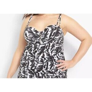 This Swim By Cacique tankini top is a perfect addition to your swimwear collection. The black color and palm leaf theme add a touch of elegance to your outfit. The underwired swim top style provides support and enhances your curves, while the plus size ensures a comfortable fit.