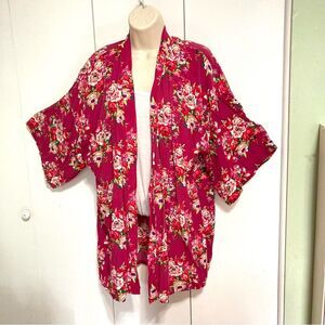 Swim Cover up KIMONO Duster Floral Wide Sleeves Mini One Size Fits Most
