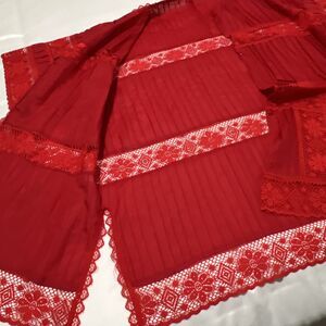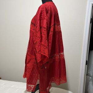 Swim Coverup Red Cutout Lace Embroidered Boho Beach Resort Wear Poolside