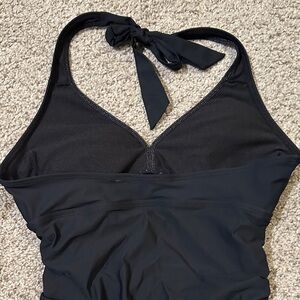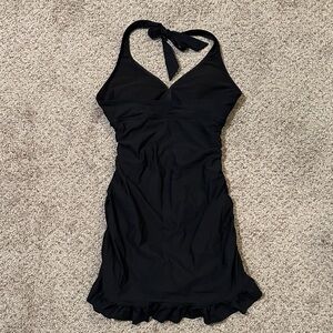 Amazing SWIM piece!! It naturally runs small and sucks you in it creating smooth lines! Great condition… only worn twice. Very comfortable and I got so many compliments! CLEAN. No balling, snags or pulls. There are spanx built in under the dress. Padded top and tie back with a little subtle sparkle! Look fabulous in this piece at the next pool party!