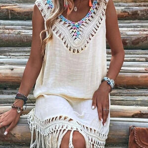 Swim Fringe Hem Tie Backless Cover Up