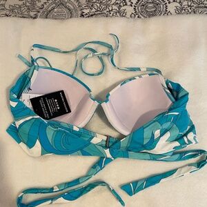 NWT with Underwire Wrap top. Bottoms are high waisted or folded down for more of a hip hugger style. Color is Teal Water Blue