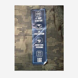 These men's swim shorts in size 34 feature a stylish camouflage pattern in green and gold, with a zip-up and elastic waist for a comfortable and secure fit. The swim shorts are made from a blend of polyester and spandex, offering a lightweight and stretchy fabric that is perfect for water activities like surfing, lifeguarding, or recreational swimming. With five pockets, including a back pocket, these swim shorts are practical and functional, while also providing UV protection and moisture-wicking properties for added comfort and performance in the water. Inseam 9", Rise 11"