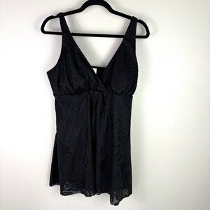 Swim Solutions 16W Black Tummy Control One Piece Swim Dress Plus NWT Pool Beach