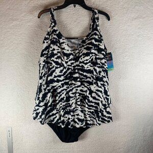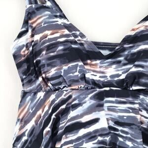 Swim Solutions Black Abstract Tiered Tummy Control One-Piece Swimsuit Size US 8
