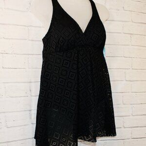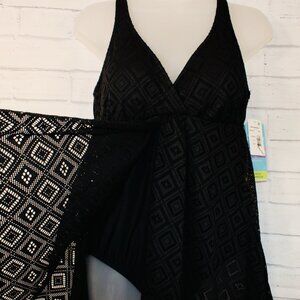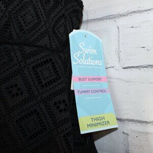 Swim Solutions Black Size 12 Crochet Flyaway Tummy-Control Swimdress NWT $109
