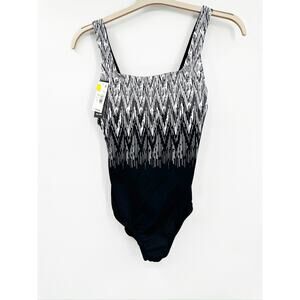 Swim Solutions Black White Women's Sharp Therapy One-Piece Tank Swimsuit 12 NWT