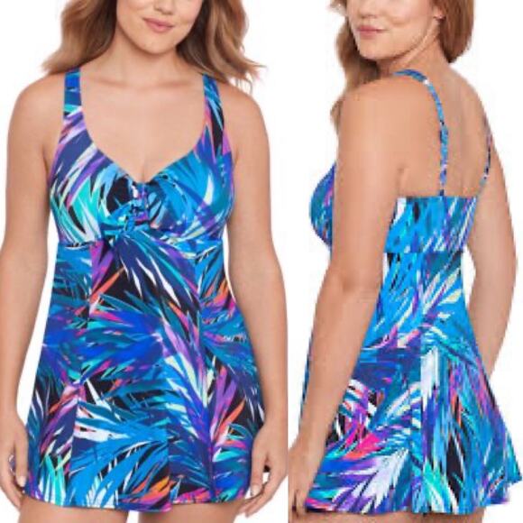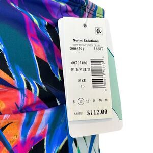 Swim Solutions Bow-Front Swim Dress Black Multicolor 60202186 Women's 10 NWT