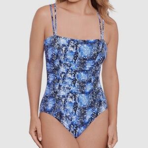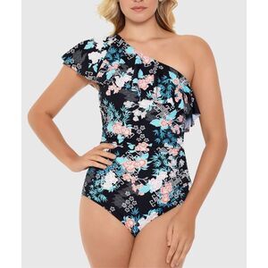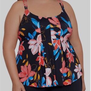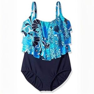 Swim Solutions Coral High Neck Tummy Control One Piece Swimsuit 16 NWT