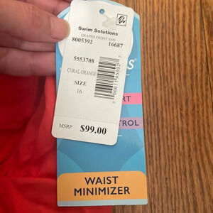 Swim Solutions Coral High Neck Tummy Control One Piece Swimsuit 16 NWT