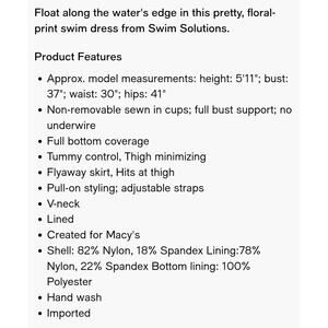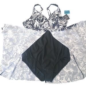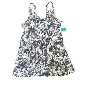 Swim Solutions Floral Print Flyaway Swim Dress size 18 Black/White NWT